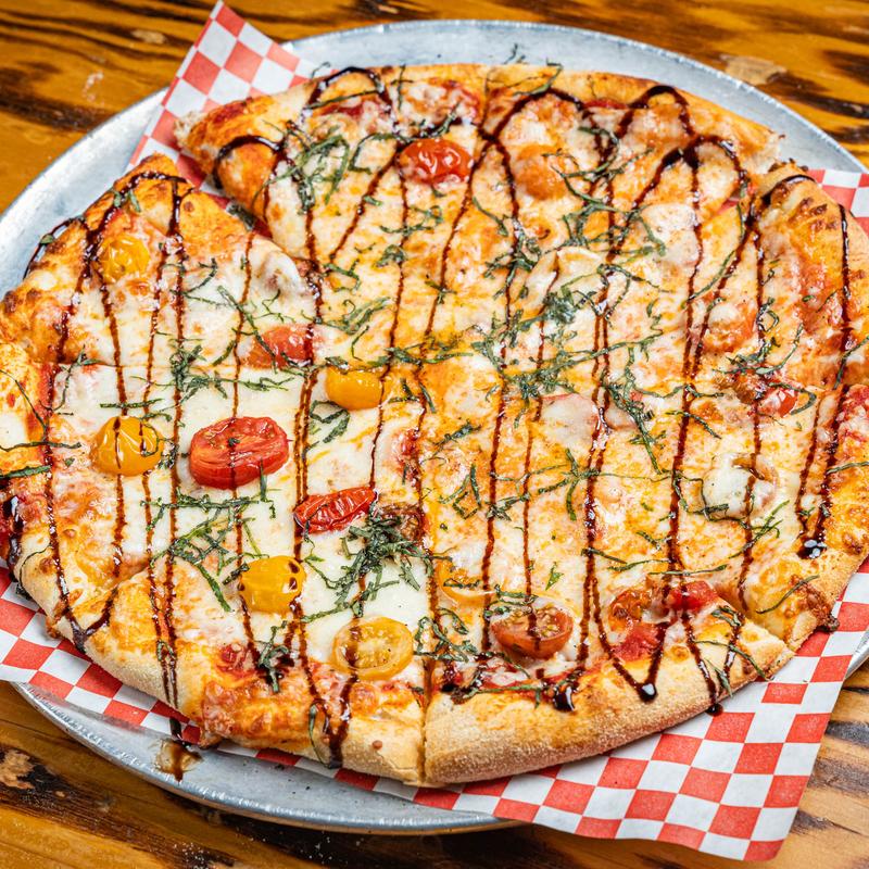 Mozzarella, tomatoes, marinara, fresh basil, and balsamic drizzle